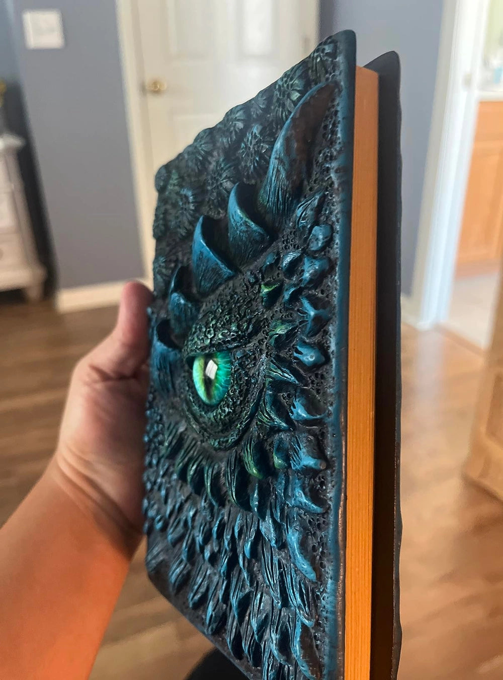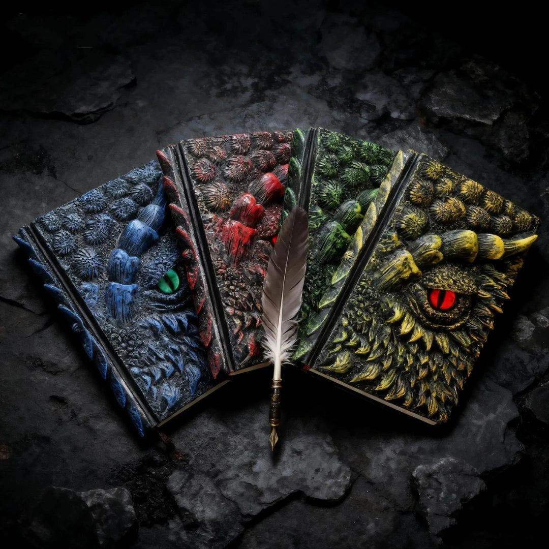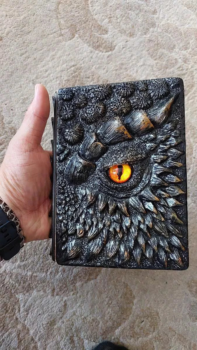 "This dragon-eye journal is incredible! The detailing and weight make it feel like a real fantasy artifact. My son loves sketching and writing in it. Perfect size, amazing craftsmanship, and totally worth it!"