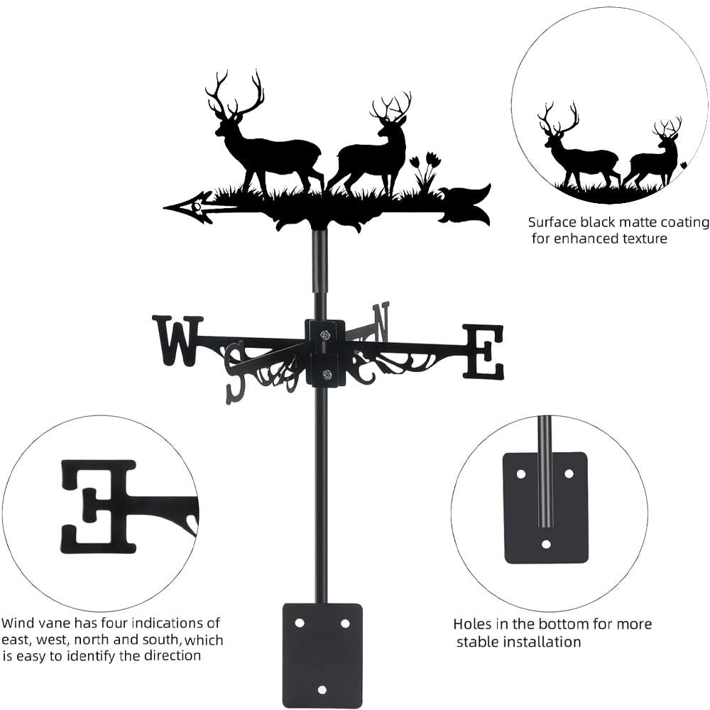 The Deer Stainless Steel Weathervane combines practical wind direction guidance with a classic outdoor silhouette. Designed to move smoothly with changing winds, it adds a refined, nature-inspired touch to rooftops and garden structures.